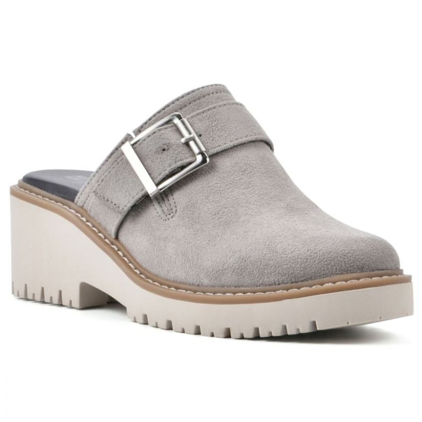 Inspire your new casual look with The Daring mule by White Mountain Shoes. This is the slip-on for those on-the-go days without sacrificing style. A sleek buckle and carefully tailored design top with a low wedge lug sole to create a unique bottom that will give you lift, comfort and style.